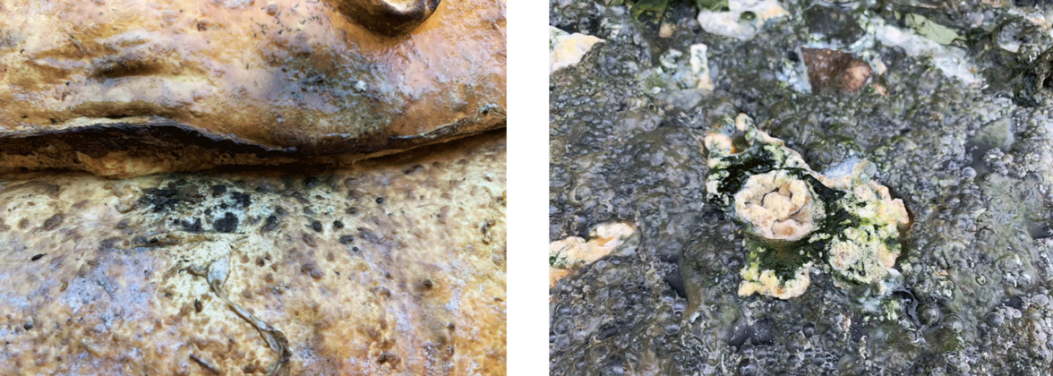 Слева: крупный план грибков, растущих на тюках сырого каучука; Справа: крупный план грибков, растущих на отходах от переработки сырого каучукового латекса в Сишуанбаньна, ноябрь 2020 года. Фото: Peter Mortimer.