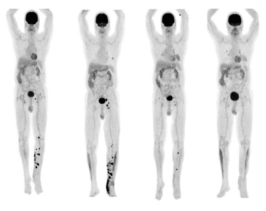 На снимках одного из участников испытания в Израиле видно, что метастазы полностью рассасываются после лечения. E. N. Baruch et al./Science
