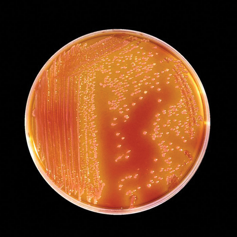 Культура Serratia marcescens. Колонии имеют красный цвет из-за пигмента (продигиозина), вырабатываемого этим организмом. Источник: Centers for Disease Control and Prevention, 1985.