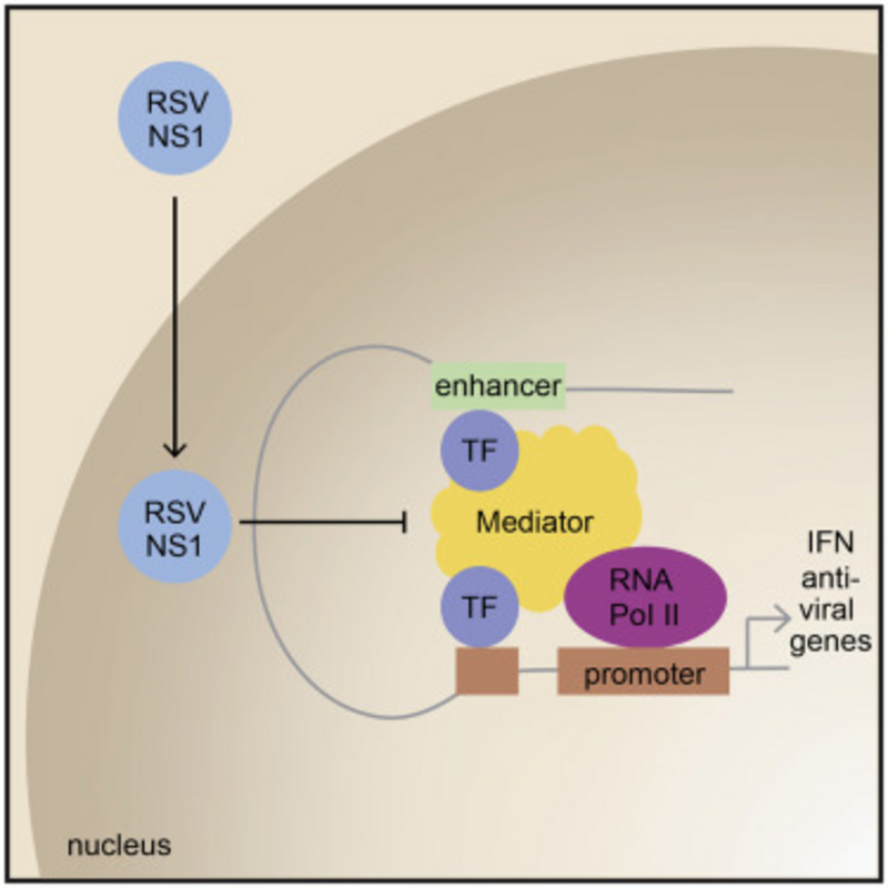 Предыдущая работа коллектива выявила NS1 как один из способов, с помощью которого РСВ может уклоняться от иммунной системы. Последнее исследование раскрыло механизм, лежащий в основе этой функции. В этом исследовании ученые увидели, что белок NS1 попадает в ядро клеток. Дальнейшая работа показала, что белок влияет на экспрессию иммунных генов; очевидно, белок NS1 связывается с другими белками, которые регулируют активность генов хозяина. Гены, на которые вирусный белок оказывал более значительное влияние, были теми, которые обычно активируются, когда вирус инфицирует клетку.
