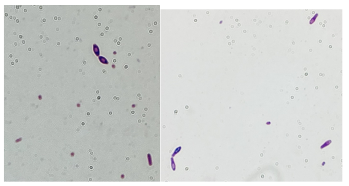 Иллюстрация 2A и 2B: Окраска по Граму мазка из мясного бульона.