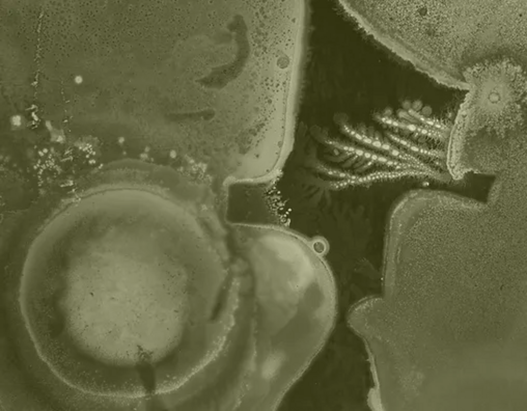 Красивые и тонкие границы возникли в результате сложных взаимодействий, обусловленных физическими, химическими и биологическими напряжениями, создаваемыми микробами. С помощью мощной камеры были обнаружены удивительные организмы, образующие странный, инопланетный пейзаж: