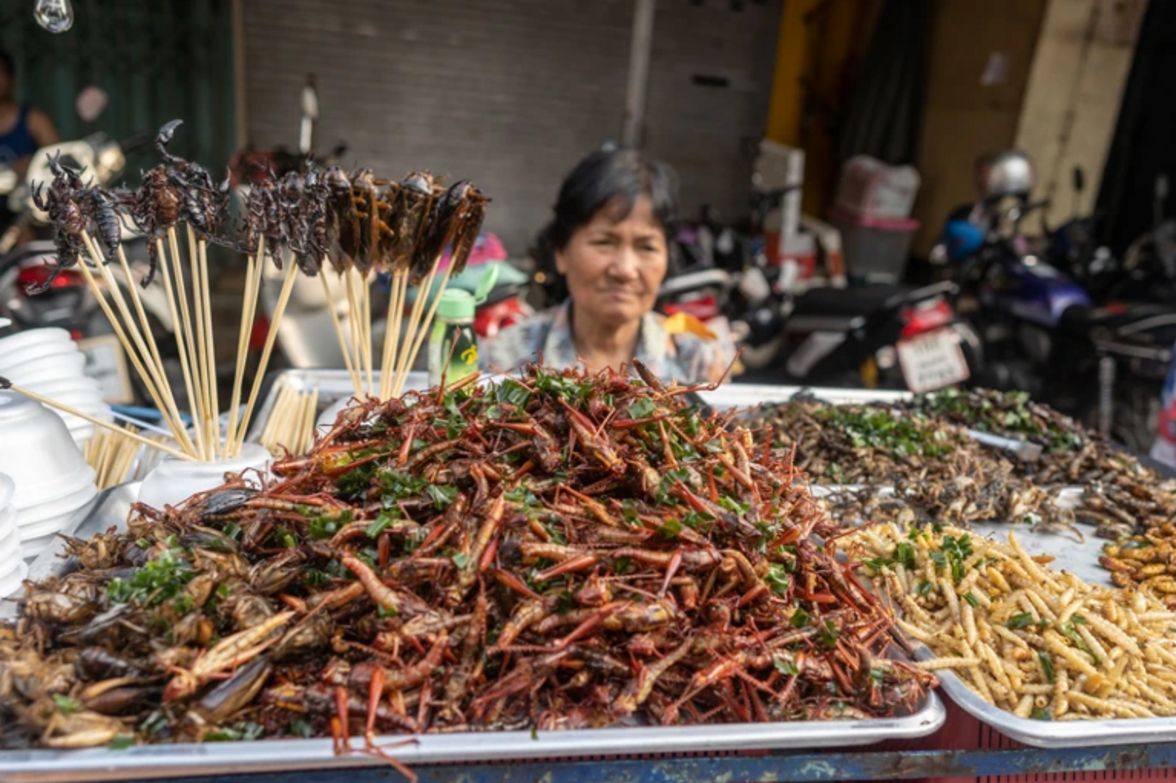 Съедобные насекомые, такие как эти, продающиеся в Бангкоке, содержат большое количество хитина, которое может быть использовано для лечения ожирения. Фото: Enzo Tomasiello