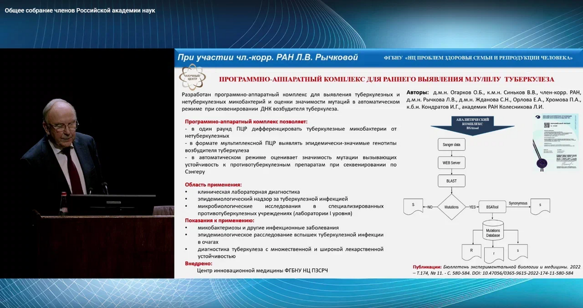Сейчас в институте ведется разработка унифицированных наборов ПЦР для генотипирования возбудителя туберкулеза. Эти диагностические панели позволяют одновременно определить принадлежность штамма к одной из двух главных генетических линий – L2 (Beijing) или L4 (Euro-American), а также установить его конкретный вариант внутри этой линии. Разработка позволит проводить массовый скрининг штаммов возбудителя инфекции и вовремя отслеживать возможные эпидемии.