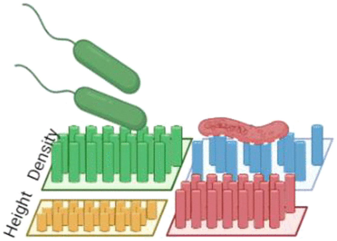 Наностолбики высотой около 60 нанометров оказались наиболее эффективными в уничтожении бактерий.