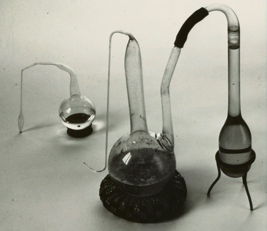 Луи Пастер использовал двойную колбу (на переднем плане) для демонстрации анаэробной ферментации. Колба на заднем плане наполнена ячменной водой, которую Пастер пастеризовал в 1860 году. Она оставалась неферментированной десятилетия спустя. Фото: Science history Institute.