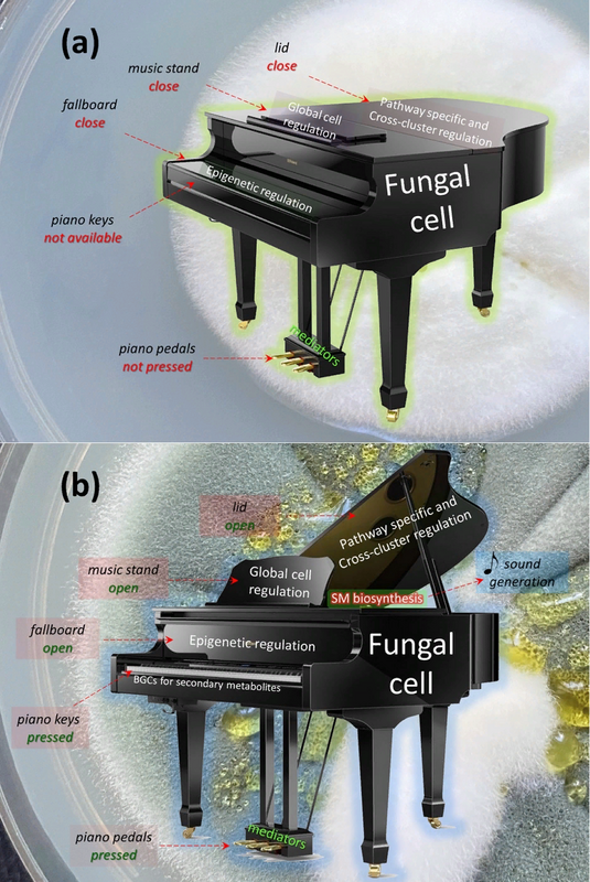Автор научного обзора сравнил извлечение звуков музыкальным инструментом с процессом синтеза грибами биологически активных соединений. Модель регуляции вторичного метаболизма по принципу фортепиано просто и наглядно объясняет механизм активации биосинтетических кластеров генов, приводящий к биосинтезу соответствующих вторичных метаболитов, а также указывает на способы повышения продуктивности высокоактивных штаммов. Результаты исследования опубликованы в журнале International Journal of Molecular Sciences.