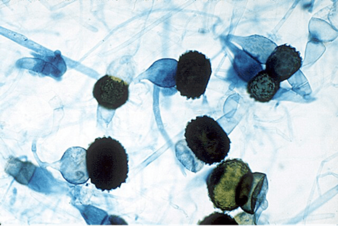 Споры Rhizopus из рода грибов, используемых для производства соевых ферментов.Источник: Wikimedia commons