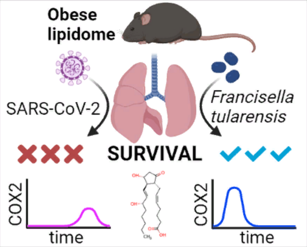 В то время как мыши DIO были более устойчивы к инфекции SchuS4, они были более восприимчивы к инфекции SARS-CoV-2 по сравнению с мышами с нормальным весом. В обеих моделях ни выживаемость, ни заболеваемость не коррелировали с различиями в патогенной нагрузке, общей клеточности или количестве воспалительных клеток в органах-мишенях у животных DIO и животных с обычным весом. Повышенная восприимчивость также не была связана с повышенной продукцией цитокинов и хемокинов ни в одной из моделей. Скорее, мы наблюдали специфическую для патогена дисрегуляцию липидома хозяина, которая была связана с уязвимостью к инфекции.