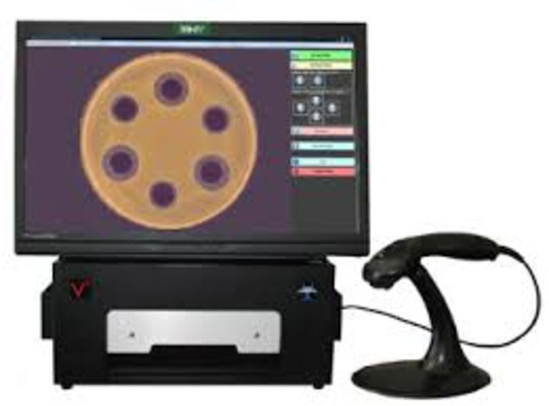 Automatically counts bacteria and yeast colonies and viral plaques on plates up to 150mm, reads and interprets chromogenic agar. (Colony Counting, Chromogenic Agar)