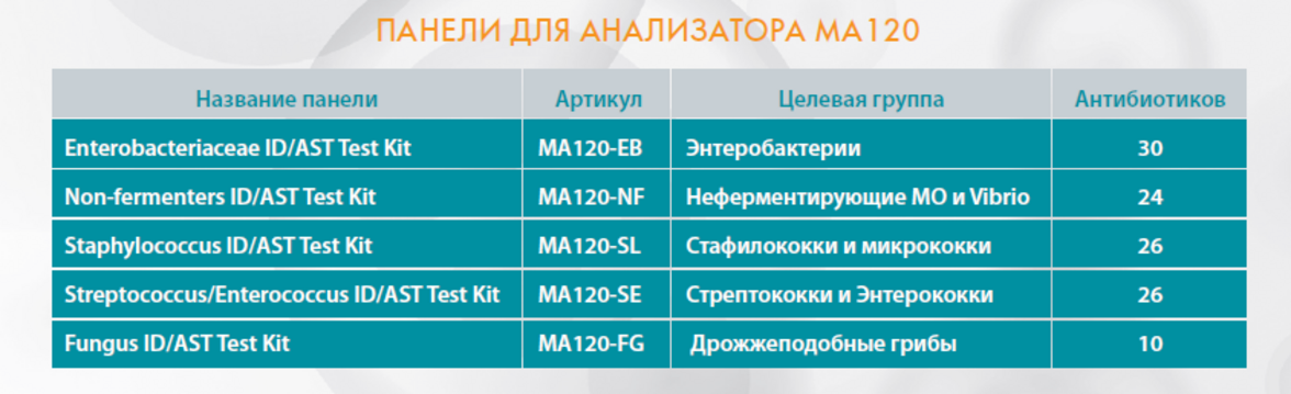 MA120 ID/AST Работает с широким спектром МО: Neisseria spp., Haemophilus spp., Corynebacterium spp., Listeria spp. и прочими МО.