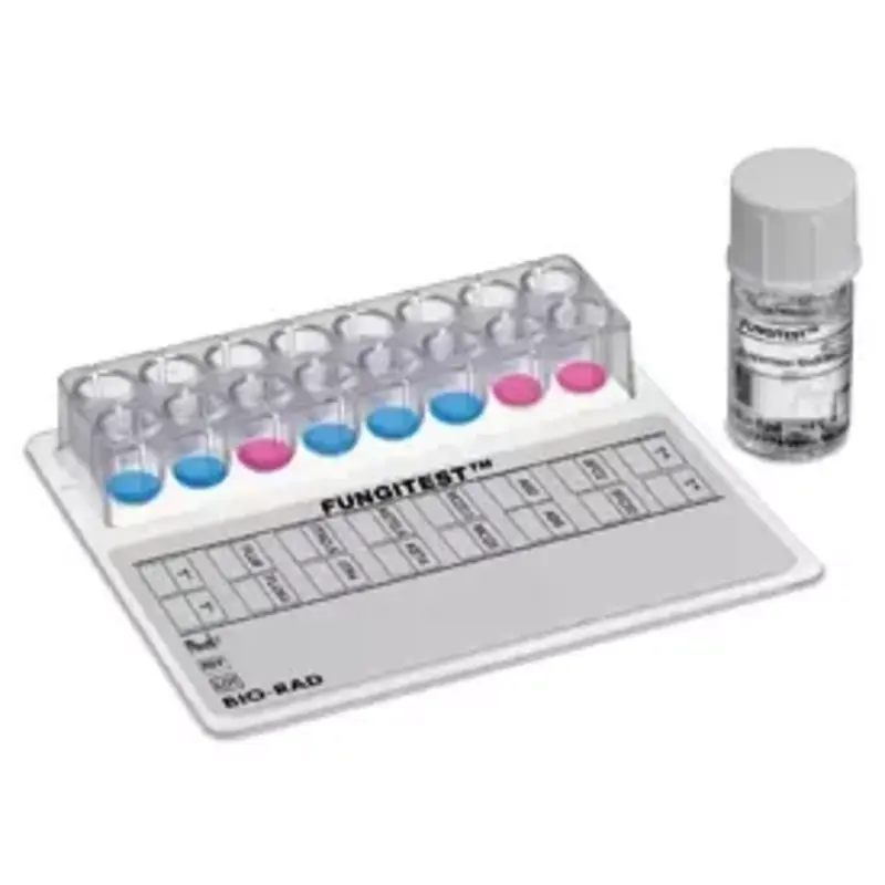 Фунгитест основан на определении роста дрожжей в присутствии 6 антигрибковых препаратов в 2 различных концентрациях, в модифицированной RPMI 1640 буферной среде, с цветовым индикатором. Оценка роста основана на восстановлении цветового индикатора, который изменяет цвет среды с голубого на розовый. Когда рост подавляется антигрибковыми препаратами, среда остается голубой. Этот тест, представляет собой микропанель с 16 лунками, состоит из: