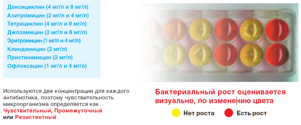 В набор входят 10 планшетов, в лунках которых в дегидратированном виде содержатся антибиотики: