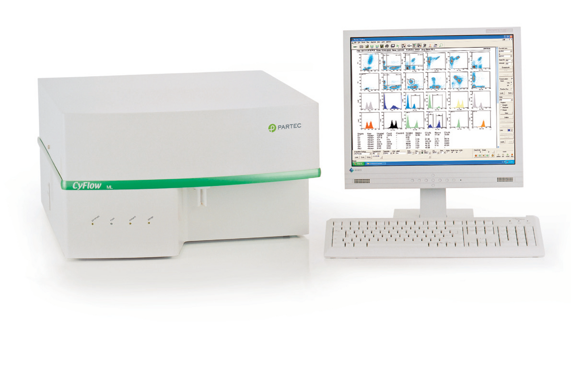 - Модульная оптическая система, до 16/9 оптических параметров с выбранными ФЭУ и встроенными электронными усилителями CyFlow ML: FSC1/2 (мало- и широкоугловое рассеяние), SSC, FL1-FL13