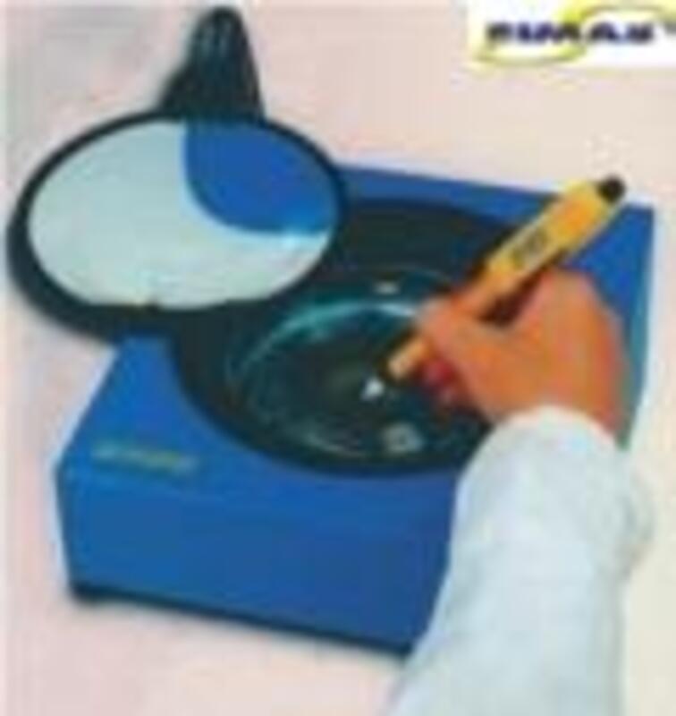 Конструкция: В виде ручки. Имеет ЖКД с четырех разрядным табло, общий выключатель и чувствительный маркер. При прикосновении к поверхности чашки Петри происходит звуковой сигнал, электронная регистрация касания и цветовой след вокруг колонии. Маркер одинаково хорошо пишет, как на пластиковой , так и на стеклянной чашке Петри. Счетчик имеет аккумуляторную батарею (емкость 1 миллион касаний). Вес 24 грамма.