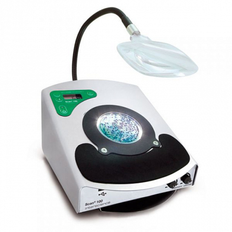 Scan 100 - прибор для ручного подсчета колоний; колонии маркируются любым маркером или фломастером; каждое соприкосновение сопровождается звуковым сигналом, количество колоний отображается на дисплее.